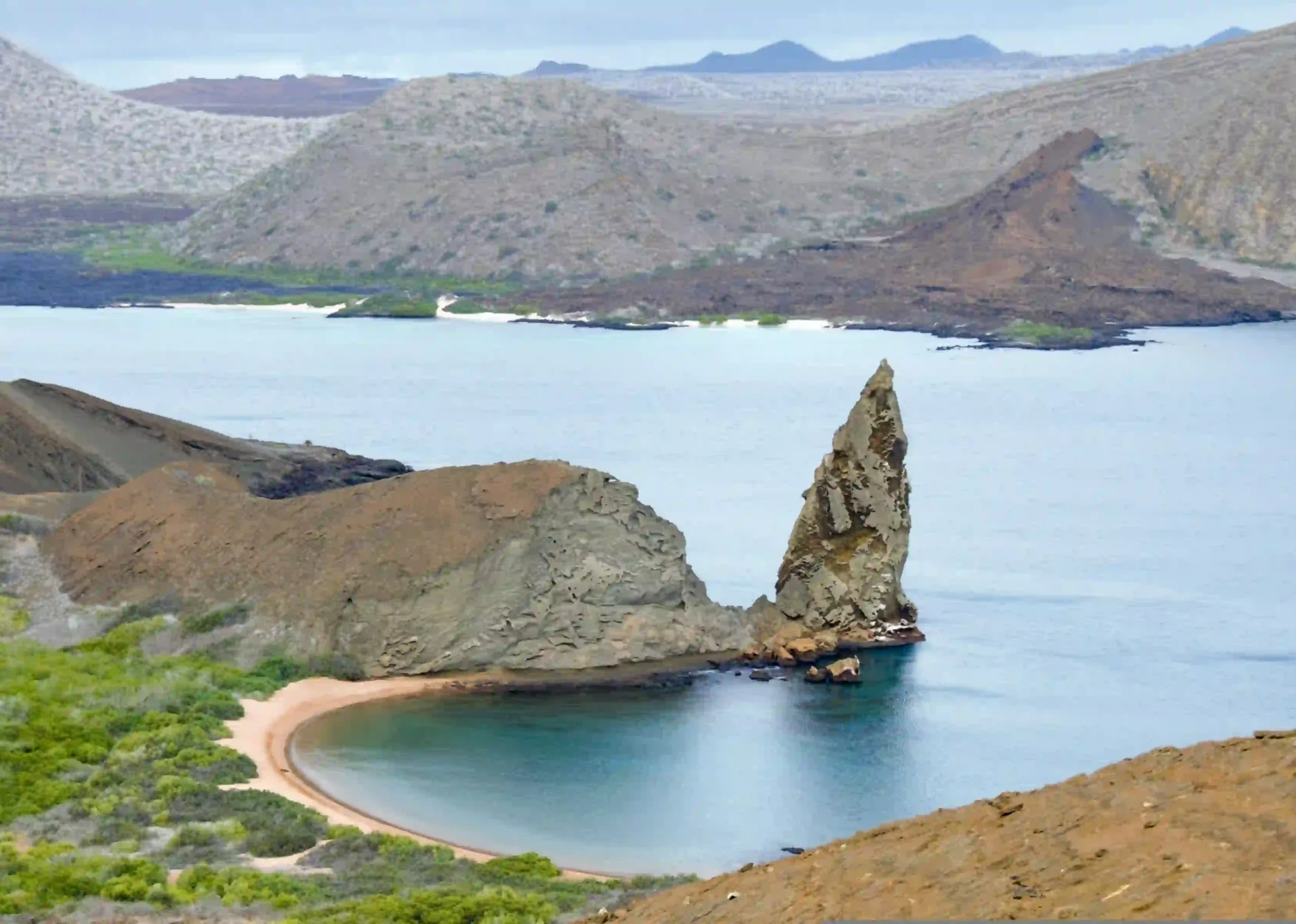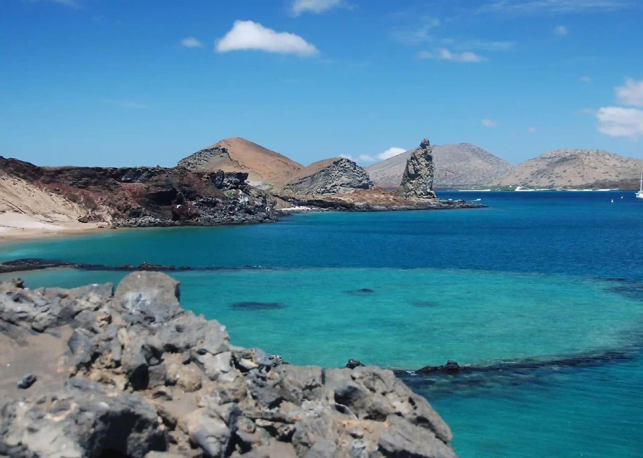 Another fun-filled day out on the water. Full day boat excursion visiting one of the islands, North Seymour, South Plazas, Bartholomew, or Santa Fe. Bartholomew, a tiny island of just 1.2 km 2, offers the visitor one of the most spectacular views of the archipelago. Bartholomew is located near the west coast of James, on the other side of Sullivan Bay. It is famous for its Pinnacle Rock, which is the representative characteristic of Bartholomew. The climb to the 114 m high peak is both challenging and worth doing. On your way up, you will encounter different formations of volcanic origin, including spatter and tuff cones, lava flows, and lava tubes. Once on the summit, there is a spectacular view of the surroundings. Bartholomew is also a must for the visitor interested in geology. Penguins are common in the Bay Area.